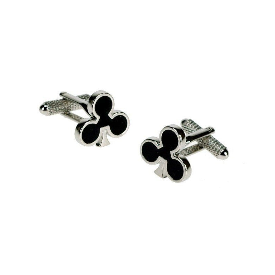 Attractive clubs cufflinks produced in rhodium silver with black finish.