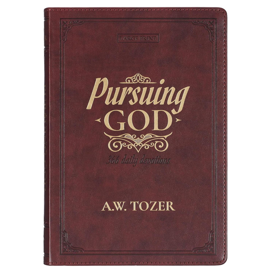 The Pursuing God Saddle Tan Faux Leather Devotional Large Print Edition is a compilation of 366 daily readings from the heart and mind of Dr. A.W. Tozer. The selections have been gleaned from his taped sermons, with additional excerpts from his published books and his incisive editorials. His helpful personal illustrations, testimonies, and spiritual concerns have been scattered throughout these pages, all glorifying the Person of Jesus Christ, our Savior and Lord. In this collection, Tozer calls readers to reflect on God's Word, consider who God is, and turn to Him in prayer.
